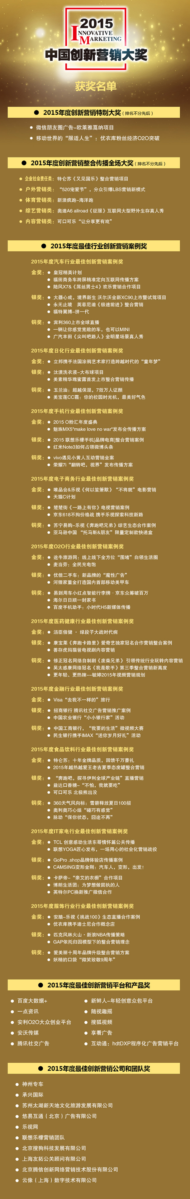 此次峰会的另一大亮点,即是现场揭晓和颁发了“2015中国创新营销大奖”的各个奖项。“中国创新营销大奖”是《球盟会官方登录平台入口》秉承“发现营销价值影响营销决策”的办刊理念,为表彰行业内优秀的创新营销案例,深度挖掘创新营销价值,激励更多的广告主和营销实践者进行创新和开拓所设立的专业奖项。在如今营销主导地位日益凸显的时代,营销对各个行业的影响非同小可,跟着创新营销走,是未来企业发展的保证,也是中国创新营销大奖的一个重要意义所在。